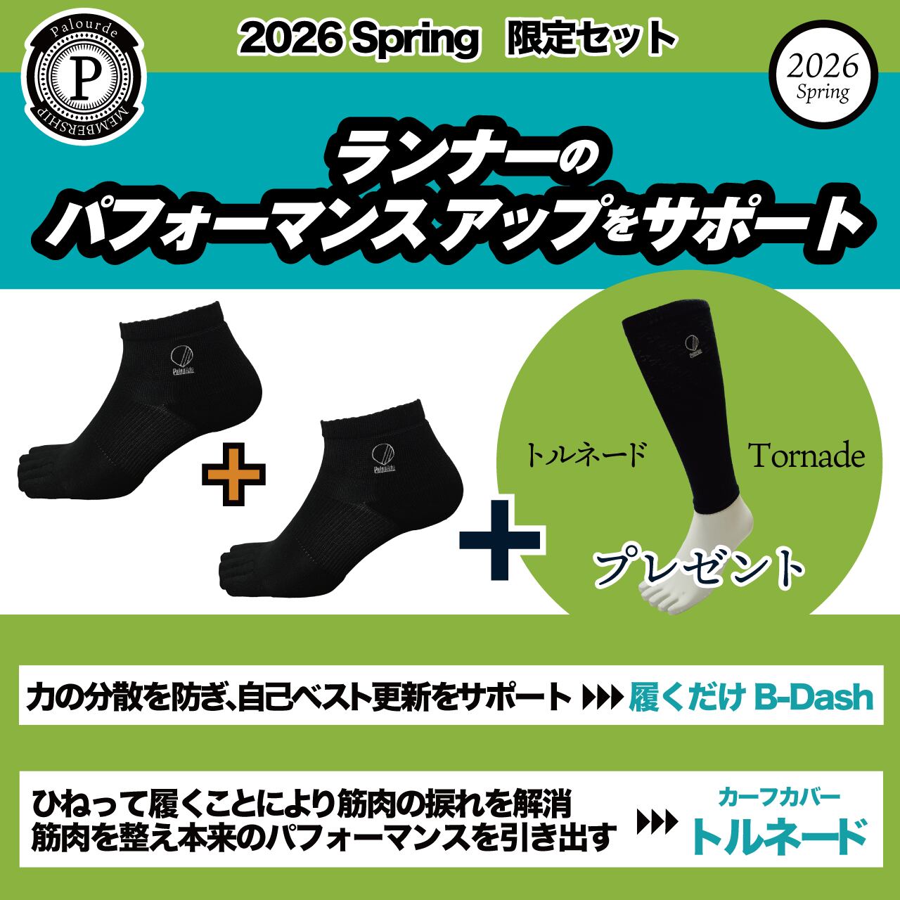 【2026Spring限定セット】ビーダッシュ/B-Dash ショート2足セットでカーフカバー トルネードをプレゼント。