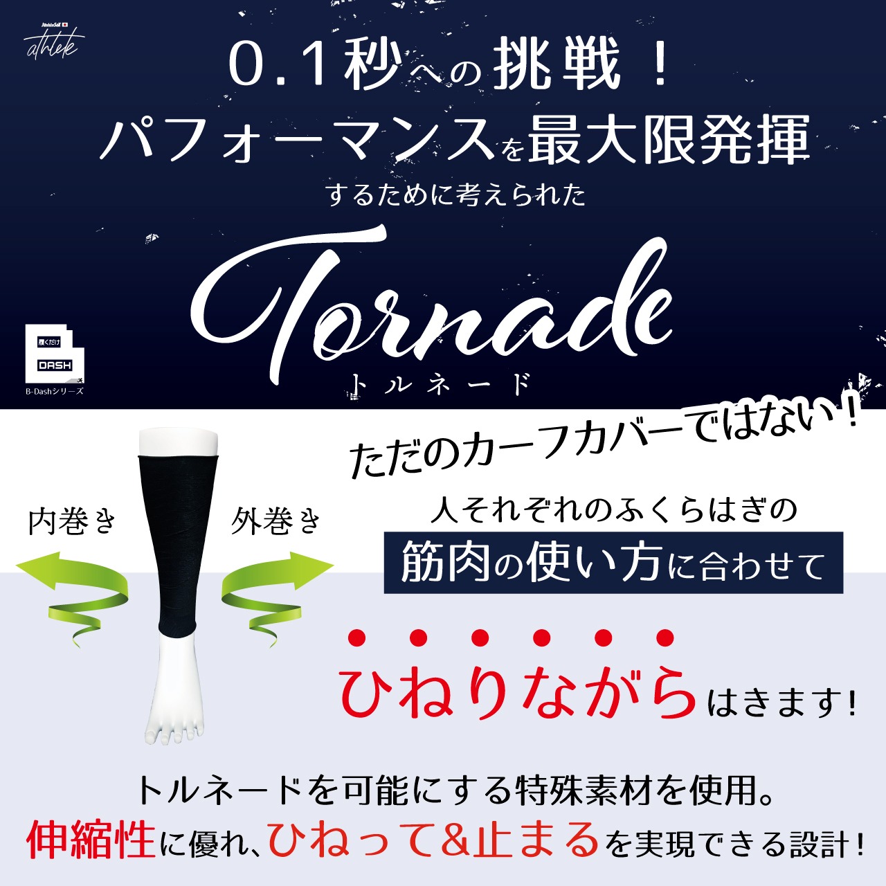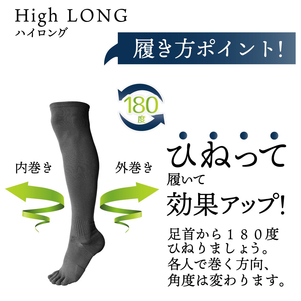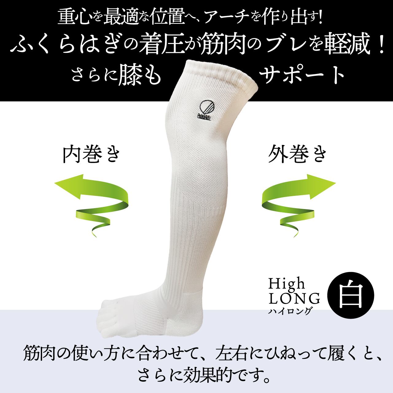 ひねって履くことにより筋肉の捩れを解消し、筋肉を整えることにより本来のパフォーマンスを引き出します。