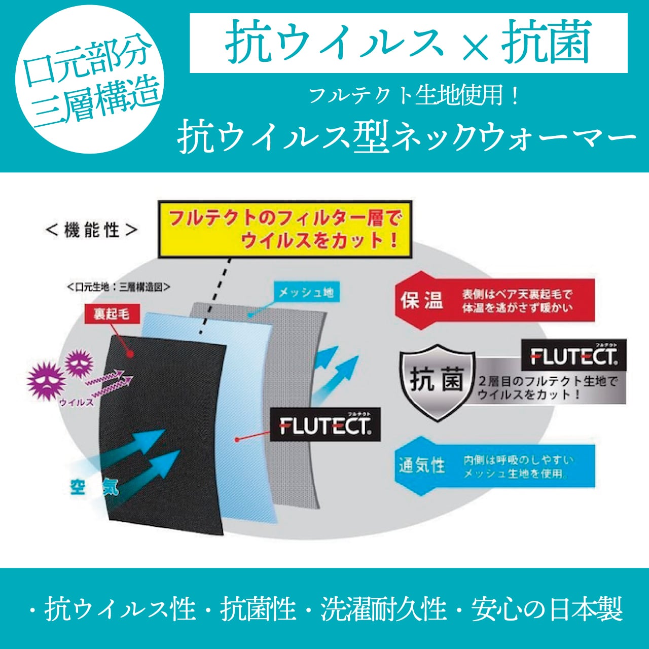 口元部分三層構造の抗ウイルス型ネックウォーマー。
