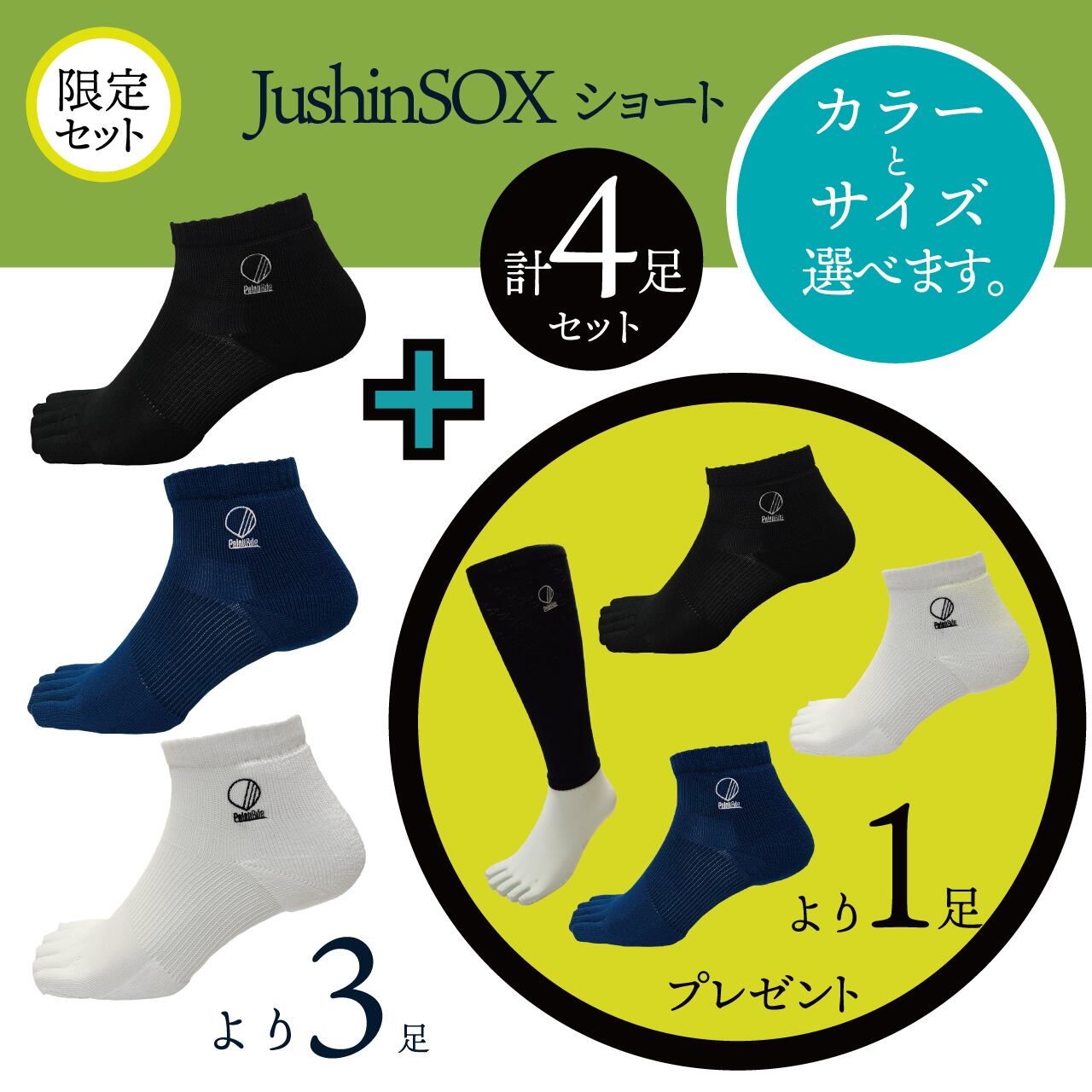 【4足セット】JushinSOXショートお好きなカラーの3足セットでJushinSOXショートorカーフカバー トルネードをプレゼント。